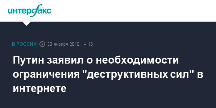 Путин заявил о необходимости ограничения "деструктивных сил" в интернете