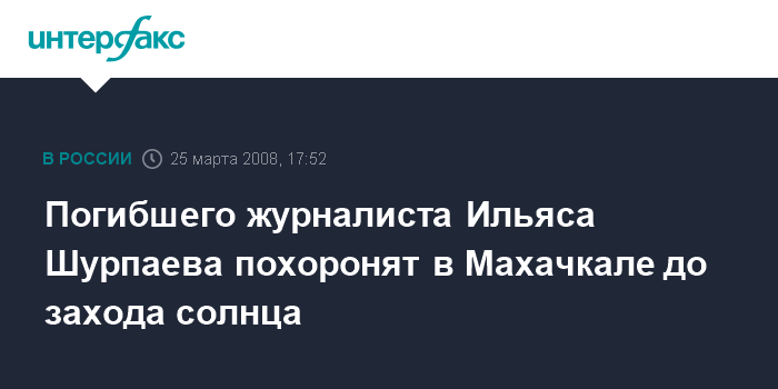 Погибшего журналиста Ильяса Шурпаева похоронят в Махачкале до захода солнца