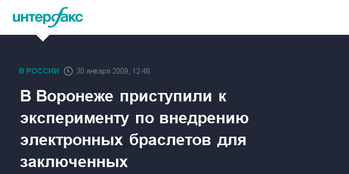 Москва. 30 января. INTERFAX.RU - В Воронеже начался эксперимент по внедрению электронных браслетов, с помощью которых можно контролировать передвижение заключенных, сообщили "Интерфаксу" в пятницу в пресс-службе Управления Федеральной службы исполнения наказаний (ФСИН) по Воронежской области.