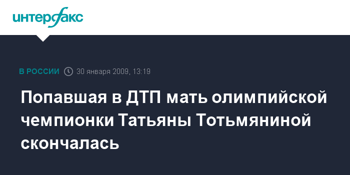 Попавшая в ДТП мать олимпийской чемпионки Татьяны Тотьмяниной скончалась