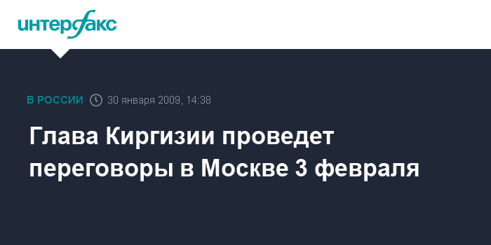 Москва. 30 января. INTERFAX.RU - Президент Киргизии Курманбек Бакиев посетит Россию с рабочим визитом 3 февраля по приглашению президента РФ, сообщила в пятницу пресс-служба Кремля.