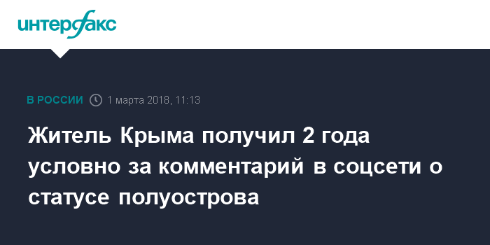 Житель Крыма получил 2 года условно за комментарий в соцсети о статусе полуострова