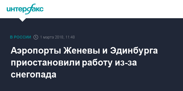 Аэропорты Женевы и Эдинбурга приостановили работу из-за снегопада