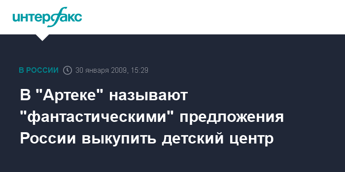 Москва. 30 января. INTERFAX.RU - Руководство международного детского центра "Артек" называет "фантастическими" предложения со стороны России выкупить у Украины центр, однако приветствовали бы помощь других стран в спасении центра. Об этом заявил заместитель генерального директора "Артека" Виталий Навроцкий в интервью журналистам в пятницу в Киеве.