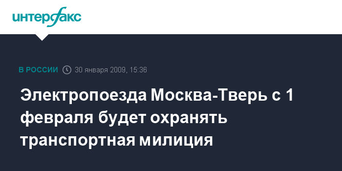 Электропоезда Москва-Тверь с 1 февраля будет охранять транспортная милиция
