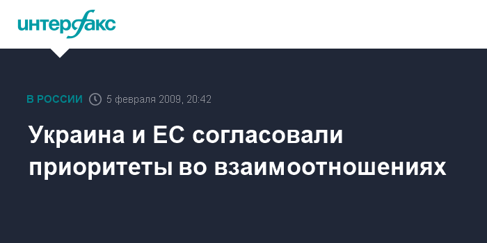 Киев. 5 февраля. INTERFAX.RU - В ходе заседания Украина - Тройка ЕС на министерском уровне согласованы приоритеты в отношениях между Украиной и ЕС на 2009 г., сообщает пресс-служба Министерства иностранных дел Украины в четверг.
