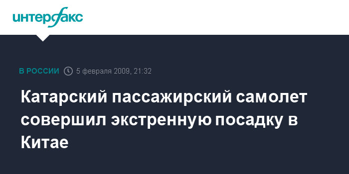 Катарский пассажирский самолет совершил экстренную посадку в Китае