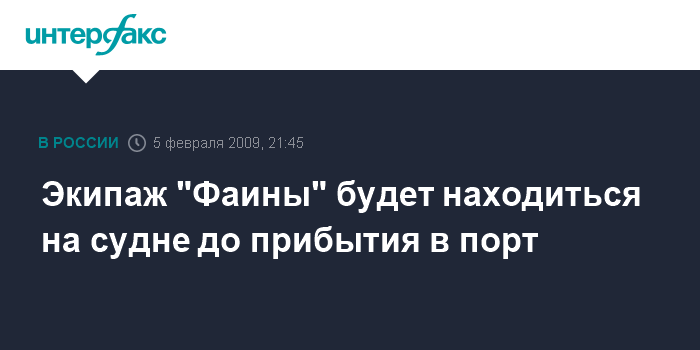 Экипаж "Фаины" будет находиться на судне до прибытия в порт