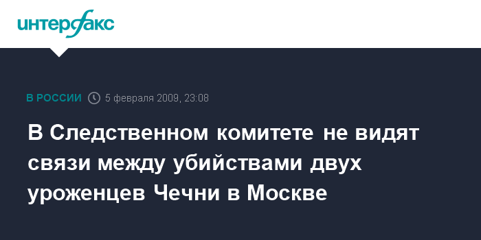 Москва. 5 февраля. ИНТЕРФАКС - По факту убийства в Москве уроженца Грозного возбуждено уголовное дело, на место преступления выехал глава Следственного управления СКП РФ по Москве Анатолий Багмет.
