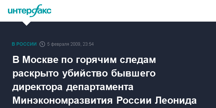 В Москве по горячим следам раскрыто убийство бывшего директора департамента Минэкономразвития России Леонида Барона - источник