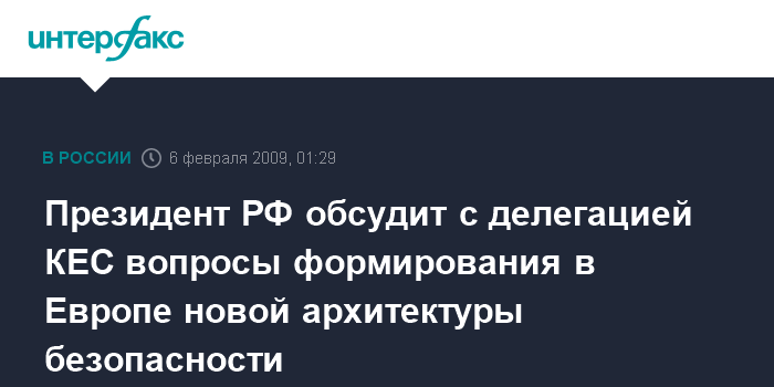 Президент РФ обсудит с делегацией КЕС вопросы формирования в Европе новой архитектуры безопасности