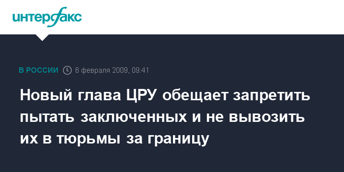 Москва. 6 февраля. INTERFAX.RU - Обещание положить конец практике вывоза заключенных в тюрьмы за рубежом и использованию пыток во время допросов дал во время слушаний в американском сенате Леон Панетта, назначенный президентом Бараком Обамой на пост директора ЦРУ. Это назначение еще должно быть утверждено сенатом.