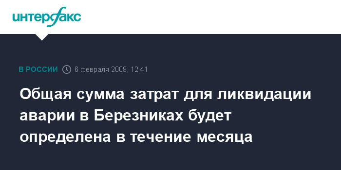 Общая сумма затрат для ликвидации аварии в Березниках будет определена в течение месяца