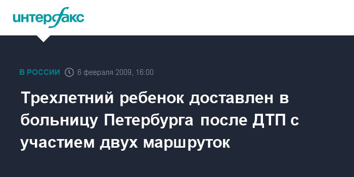 Москва. 6 февраля. INTERFAX.RU - Два маршрутных микроавтобуса столкнулись на набережной в Петербурге, пострадал трехлетний ребенок, сообщили "Интерфаксу" в пресс-службе городской станции "Скорой помощи".
