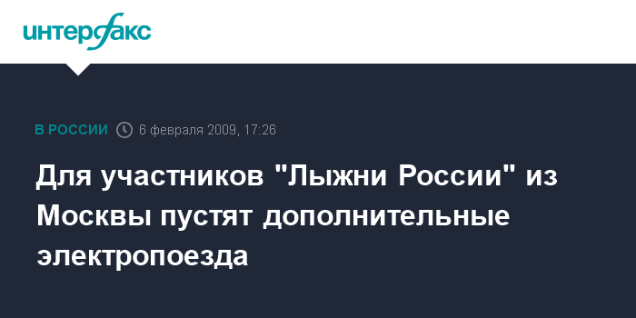 Москва. 6 февраля. INTERFAX.RU - В связи с проведением 15 февраля в Яхроме традиционных соревнований "Лыжня России" для гостей и участников мероприятия до станции "Яхрома" Савеловского направления Московской железной дороги будут назначены дополнительные поезда, сообщили "Интерфаксу" в пятницу в службе по связям с общественностью МЖД.