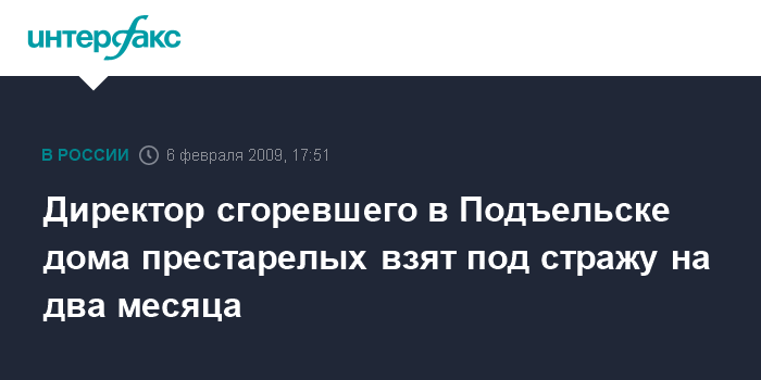 Директор сгоревшего в Подъельске дома престарелых взят под стражу на два месяца