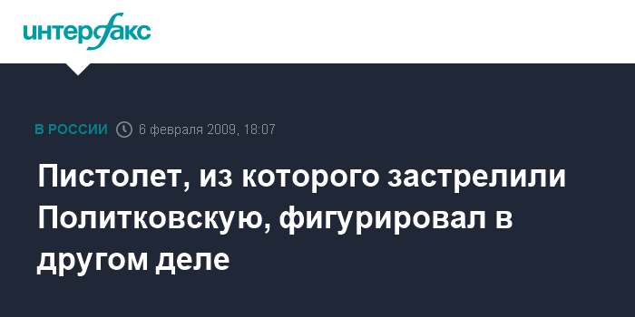 Москва. 6 февраля. ИНТЕРФАКС - Пистолет, из которого была убита Анна Политковская, ранее фигурировал в другом уголовном деле о покушении на человека.