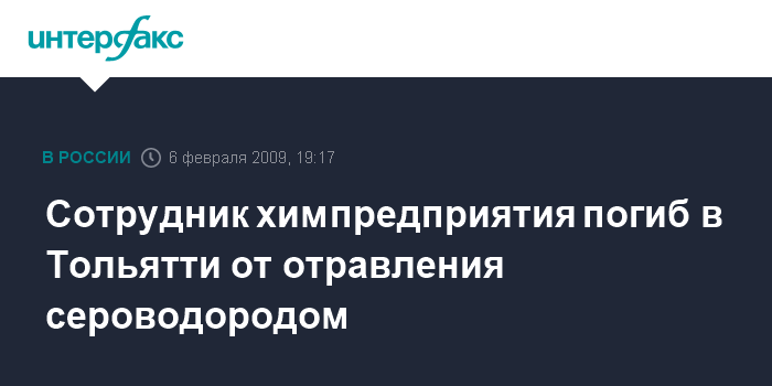Самара. 6 февраля. ИНТЕРФАКС-ПОВОЛЖЬЕ - Комиссия при МЧС по Тольятти проводит проверку по факту гибели работника ООО "Фосфор-Транзит", отравившегося сероводородом.