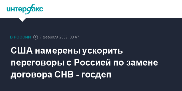 США намерены ускорить переговоры с Россией по замене договора СНВ - госдеп
