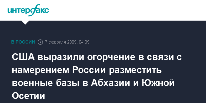 США выразили огорчение в связи с намерением России разместить военные базы в Абхазии и Южной Осетии