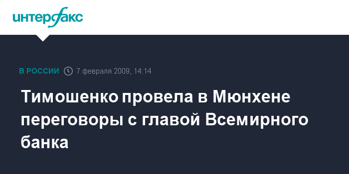 Тимошенко провела в Мюнхене переговоры с главой Всемирного банка
