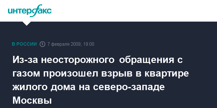 Из-за неосторожного обращения с газом произошел взрыв в квартире жилого дома на северо-западе Москвы