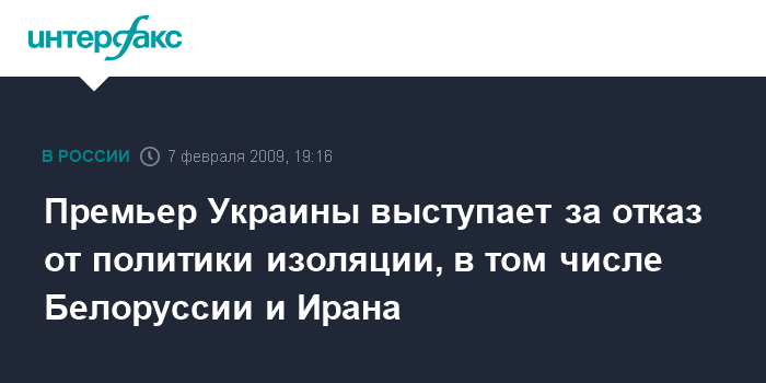 Мюнхен. 7 февраля. ИНТЕРФАКС-УКРАИНА - Премьер-министр Украины Юлия Тимошенко призывает использовать мировой кризис для отказа от политики изоляции ряда стран.