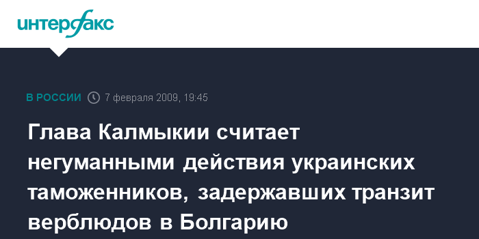 Глава Калмыкии считает негуманными действия украинских таможенников, задержавших транзит верблюдов в Болгарию