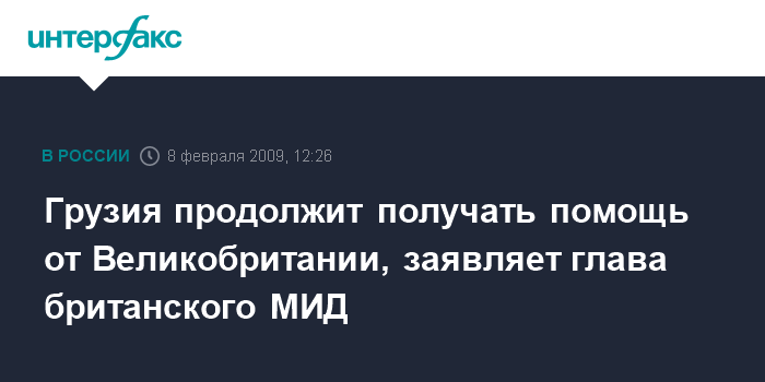 Тбилиси. 8 февраля. INTERFAX.RU - Великобритания готова продолжать оказывать помощь Грузии, заявил журналистам глава МИД Великобритании Дэвид Миллибенд, встречавшийся в субботу с президентом Михаилом Саакашвили в Мюнхене.