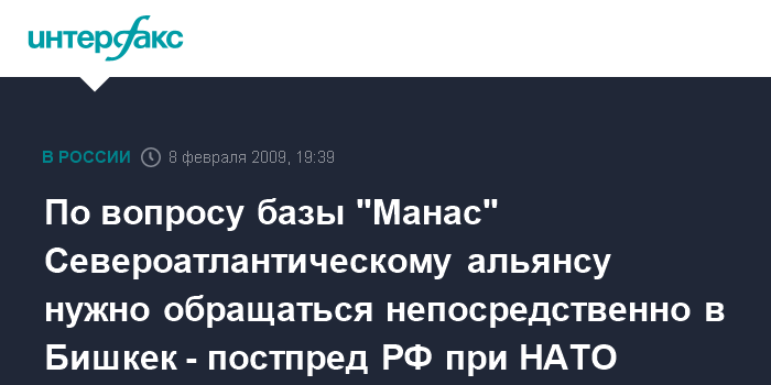 По вопросу базы "Манас" Североатлантическому альянсу нужно обращаться непосредственно в Бишкек - постпред РФ при НАТО