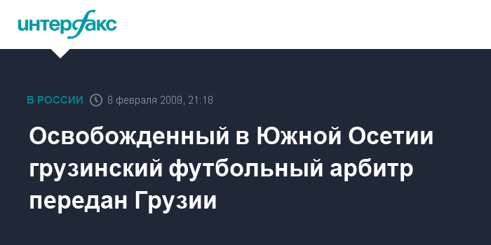 Тбилиси. 8 февраля. ИНТЕРФАКС – Футбольный судья из Грузии Малхаз Беуклишвили, в воскресенье освобожденный из плена в результате спецоперации, проведенной сотрудниками правоохранительных органов Южной Осетии, передан грузинской стороне.