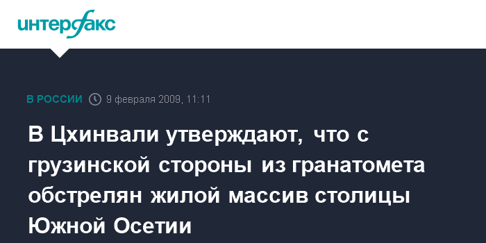 Москва. 9 февраля. INTERFAX.RU - Власти Южной Осетии обвиняют грузинскую сторону в обстреле жилого массива в Цхинвали.