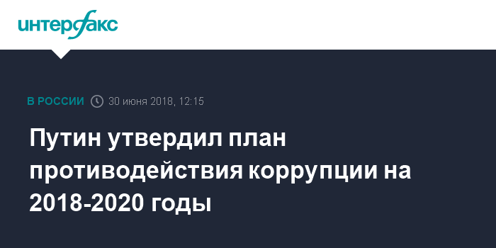 Путин утвердил план противодействия коррупции на 2018-2020 годы