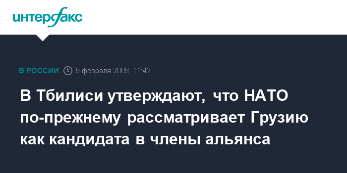 Москва. 9 февраля. INTERFAX.RU - Глава МИД Грузии Григол Вашадзе заявил, что страна рассматривается как кандидат в члены НАТО.
