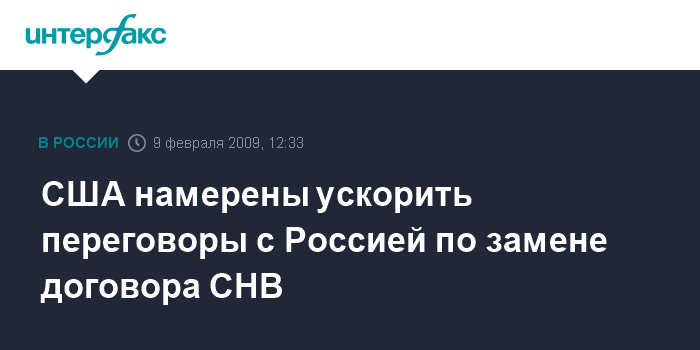 "По определению по истечении срока действия договора СНВ в 2009 году, если мы хотим иметь новый договор он должен быть быстро выработан, чтобы иметь нечто, что заменит СНВ, когда срок его действия истечет", - сказал, Г.Дугуд, выступая на ежедневном брифинге в госдепе. По его словам, США готовы к этому.