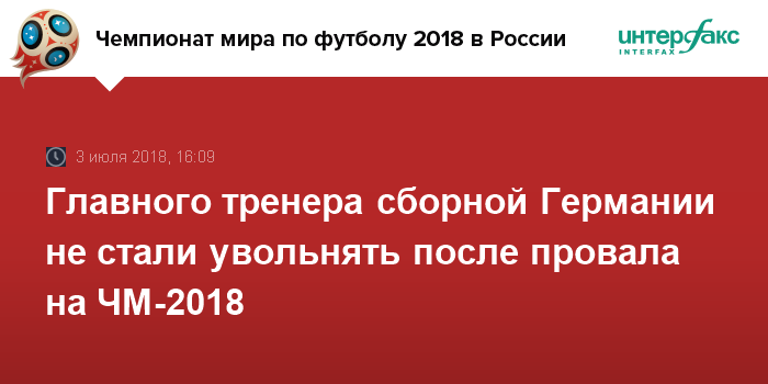 "В личной беседе с главой Немецкого футбольного союза (Райнхардом Гринделем - ИФ) Йоахим Лев подтвердил, что хочет продолжить работу в качестве тренера национальной команды. Он намерен провести перестройку команды для того, чтобы выполнить задачи, которые будут поставлены перед командой в будущем. Делегация во главе с президентом союза заявила, что Лев пользуется поддержкой руководства, которое уверено, что тренер сделает правильные выводы из выступления сборной на чемпионате мира", - говорится в сообщении.