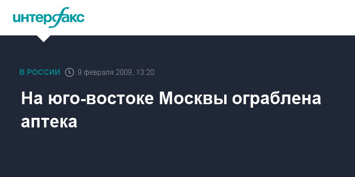Москва. 9 февраля. INTERFAX.RU - Из аптеки на юго-востоке Москвы грабитель вынес 20 тыс. рублей, сообщил "Интерфаксу" источник в правоохранительных органах города в понедельник.