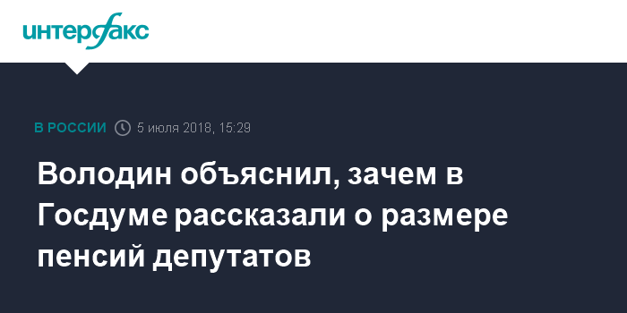 Володин объяснил, зачем в Госдуме рассказали о размере пенсий депутатов