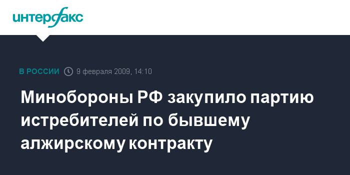 Москва. 9 февраля. INTERFAX.RU - Министерство обороны РФ приняло решение о закупке крупной партии истребителей по бывшему алжирскому контракту на сумму 25 млрд рублей, сообщил вице-премьер РФ Сергей Иванов в ходе заседания президиума правительства в понедельник.