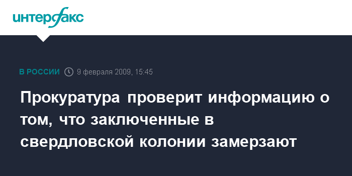 Как сообщает в понедельник пресс-служба прокуратуры Свердловской области, информация о том, что часть заключенных содержится в очень холодных камерах, появилась в ряде региональных СМИ, поэтому прокурор области дал задание проверить данные. "В сообщениях, в частности, говорилось, что заключенные замерзают в камерах штрафного изолятора и помещениях камерного типа, температура в которых понизилась в связи с наступившими на Урале морозами", - говорится в сообщении.