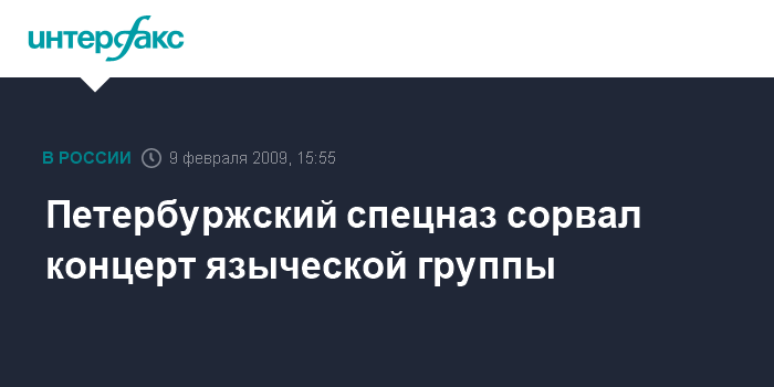 Москва. 9 февраля. INTERFAX.RU - Концерт московской группы "Аркона" не состоялся в Петербурге из-за устроенного милицейским спецназом обыска зрителей. "С прискорбием хотелось бы сообщить о срыве концерта в пятницу в клубе "Арктика" группы "Аркона" силами правоохранительных органов Санкт-Петербурга. Как выяснилось впоследствии, это были плановые работы по борьбе с отдельными представителями неформальной культуры, которые проходили в этот день не только в клубе "Арктика", - говорится в сообщении на официальном сайте группы.
