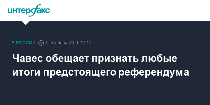 Чавес добавил, что признает результаты референдума, который должен состояться в воскресенье, даже в случае проигрыша, и призвал оппозицию сделать то же самое. "Я хотел бы услышать то же самое от руководителей оппозиции. Мы признаем результаты референдума и продолжим идти вперед. Это мой призыв и мое решение", - сказал Чавес.