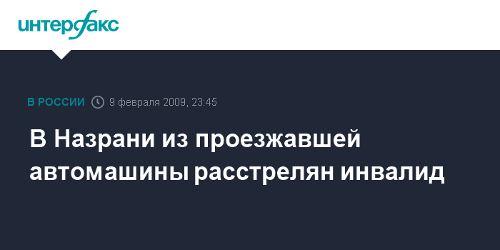 Ростов-на-Дону. 9 февраля. В г. Назрани (Ингушетия) неизвестные расстреляли местного жителя – инвалида.