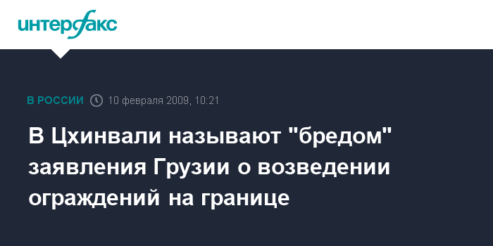Москва. 10 февраля. INTERFAX.RU - В министерстве иностранных дел Южной Осетии опровергают утверждения грузинской стороны о якобы имеющихся планах Цхинвали по строительству ограждений по периметру грузино-осетинской границы, но отмечают рост напряженности в приграничных районах.