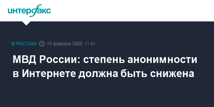 "Анонимность - это приглашение к преступлению, это тот самый темный переулок, в котором творятся злодеяния. Дайте туда свет, и преступлений будет меньше"- заявил Мирошников "Интерфаксу".