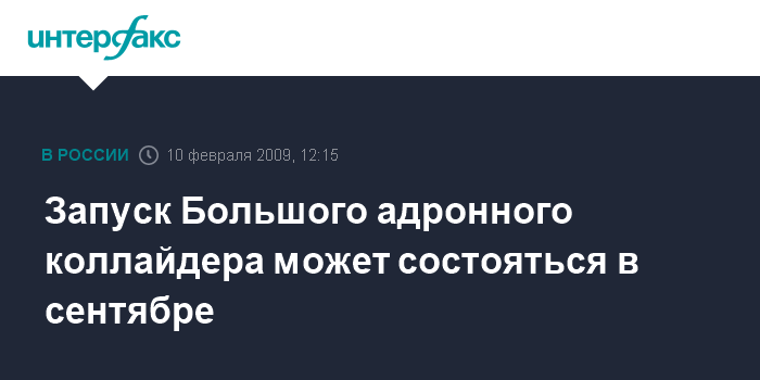 Москва. 10 февраля. INTERFAX.RU - Запуск Большого адронного коллайдера может быть перенесен на сентябрь из-за обнаружения новых неисправностей, сообщает во вторник Европейская организация ядерных исследований (CERN).