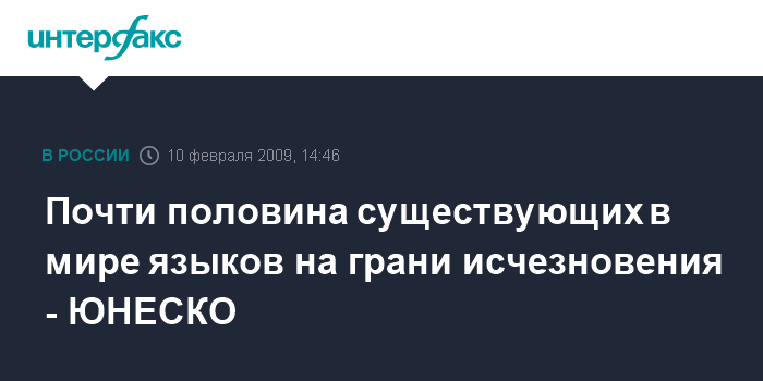 Почти половина существующих в мире языков находится на грани исчезновения. Каждый месяц в мире исчезают два языка. Тысячи языков не используются системами образования, не представлены в интернете, отмечает служба новостей ООН.