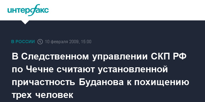В Следственном управлении СКП РФ по Чечне считают установленной причастность Буданова к похищению трех человек