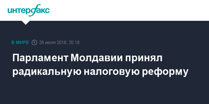 Москва. 26 июля. INTERFAX.RU - Парламент Молдавии принял в четверг без обсуждения, сразу в двух чтениях радикальную налоговую реформу.
