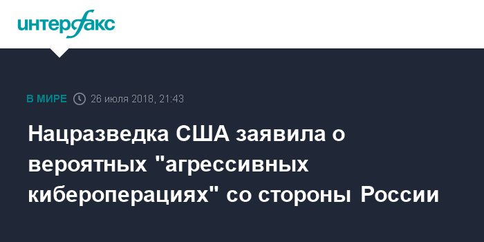 Нацразведка США заявила о вероятных "агрессивных кибероперациях" со стороны России